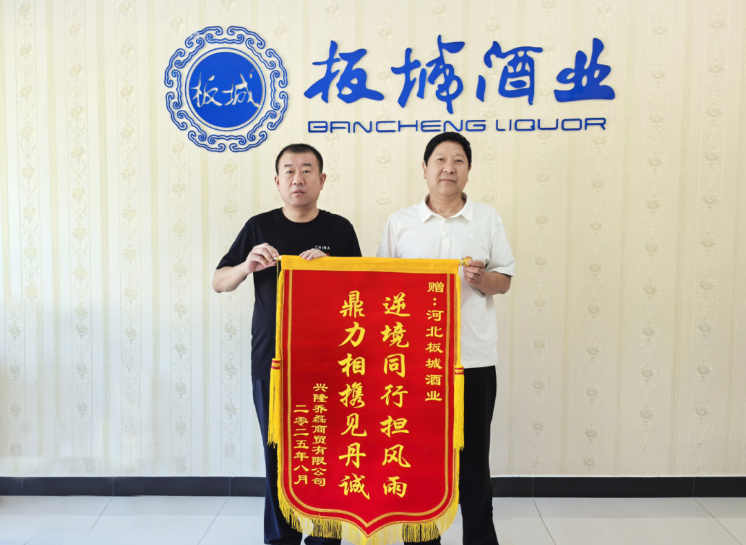 廠商攜手 共渡難關(guān) | 興隆喬磊商貿(mào)向板城酒業(yè)贈(zèng)送錦旗致謝 2025-10-09